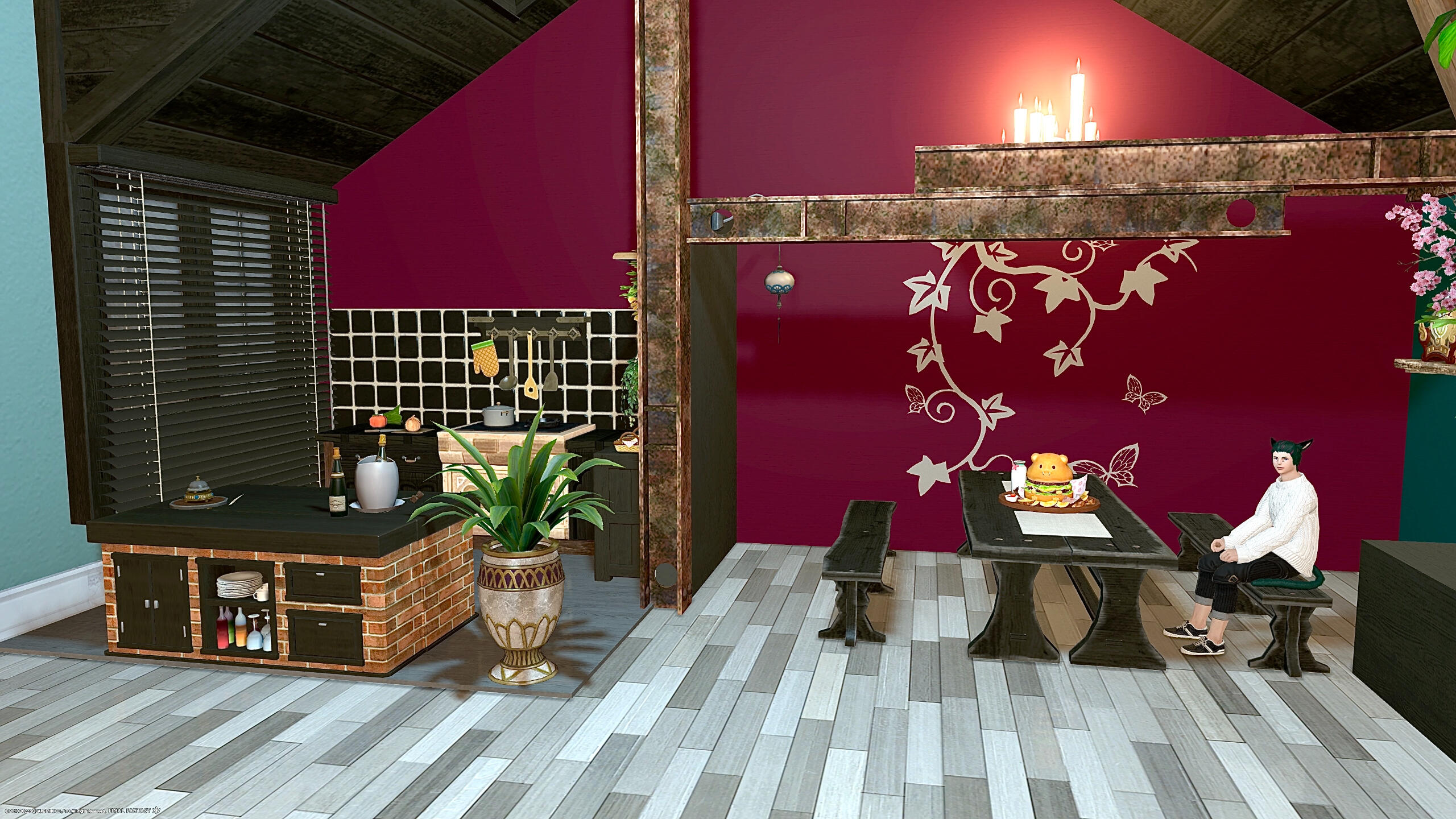 Coming up with a design for your personality isn't something that can be put in a table. I will give you advice on what will fit your personal taste or the theme you have in mind for your project. We find out together what's right for you. If you want a modern style or something that still looks to be vanilla. If you are okay with seeing the original structure of the building or if you want to hide that. More and more question will raise like color choices and items that you want to have in your house or project. With the limited item slots, it has to be discussed if every space (Room/Floor) is used. Also, if I have to make another Character on your Home world or if you provide access another way. Do you craft the items (which is more work for me because I have to think about what I need before that) or do you provide Gil for it? - Do you want to have Tribe reward / PVP or doman enclave items in it, or even some MogStore items? - We find that out together. Feel free to contact my on social media or on discord.
