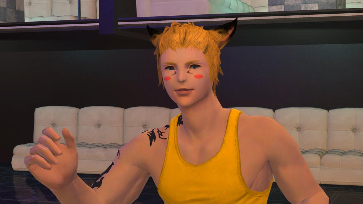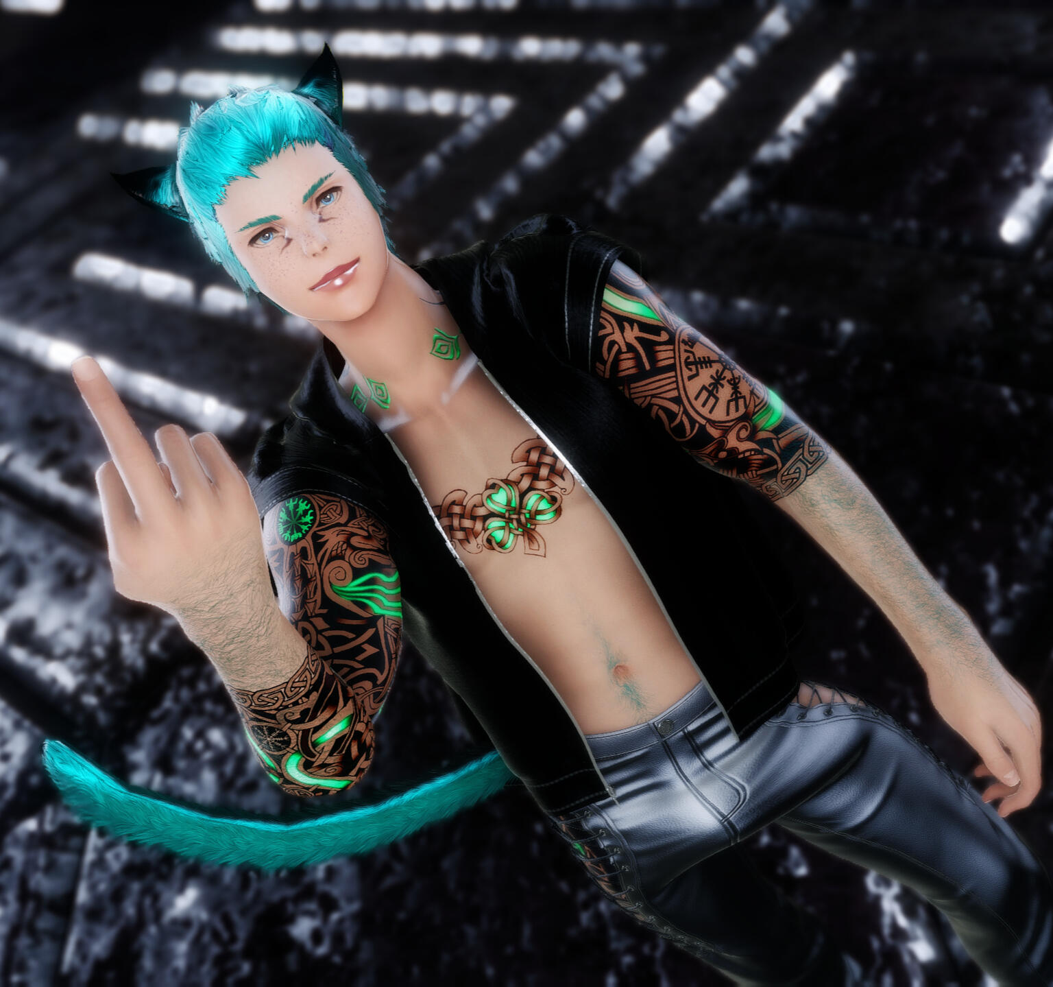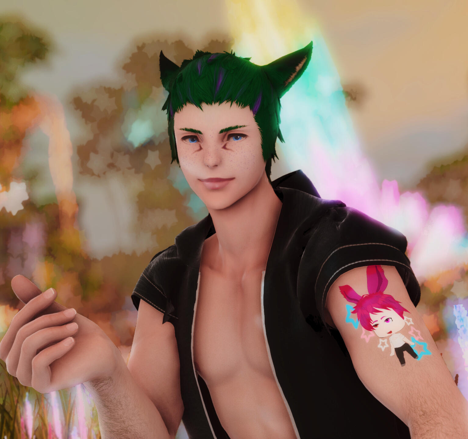 Because his story is bound to the DartanCOURS familiy Twim decided to drop the tribe name and twist my last name. So some day Twim Kersel was reborn.As a child his Lalafell mother took him to Ul'dah. Twim always liked his tail. His mother set up a little tail-contest that he won. The myth of his award-winning tail was born.He learned the arts of being a floortank (Dragoon) and does his best to keep the meme alive. Now Twim became a small DJ and designs some houses and venues at the sides.