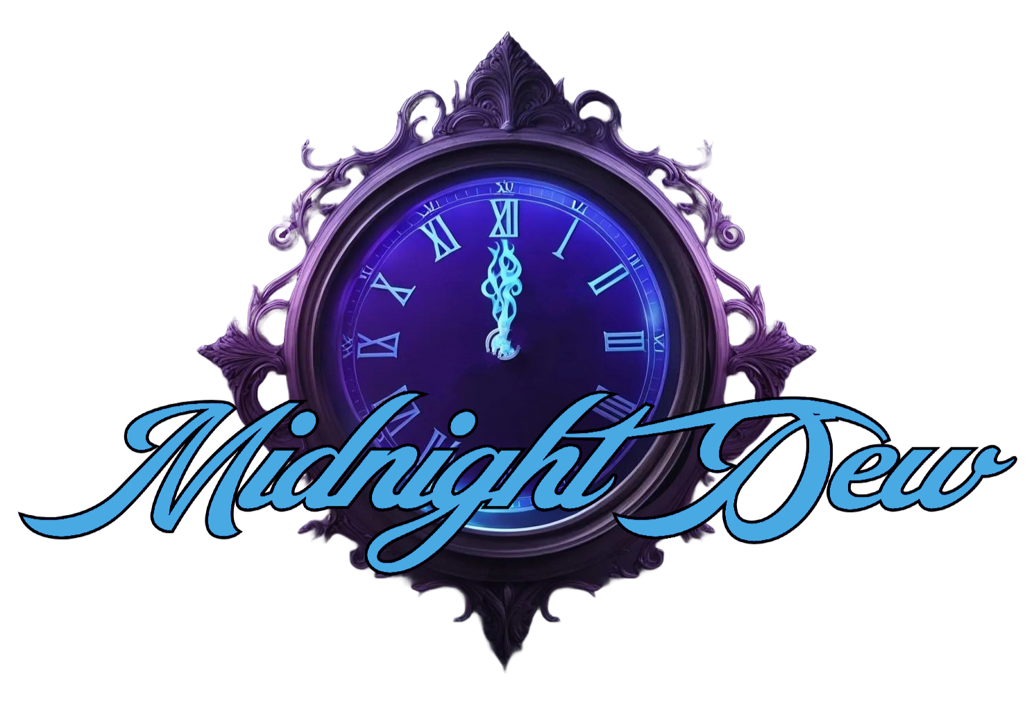 The poster uses a structured layout to clearly separate event details from visual elements, ensuring easy readability and a clean flow of information. A vertical timeline on the left highlights the DJ schedule, while the central and bottom sections emphasize the event name and venue, anchoring key details in prominent positions. The color palette of deep purples, royal blues, and gold conveys a luxurious, nighttime atmosphere, aligning with the "Midnight Dew" theme. Gold accents draw attention to important text, adding elegance and contrast against the darker background.Thank You - Sunride Blaze ♥